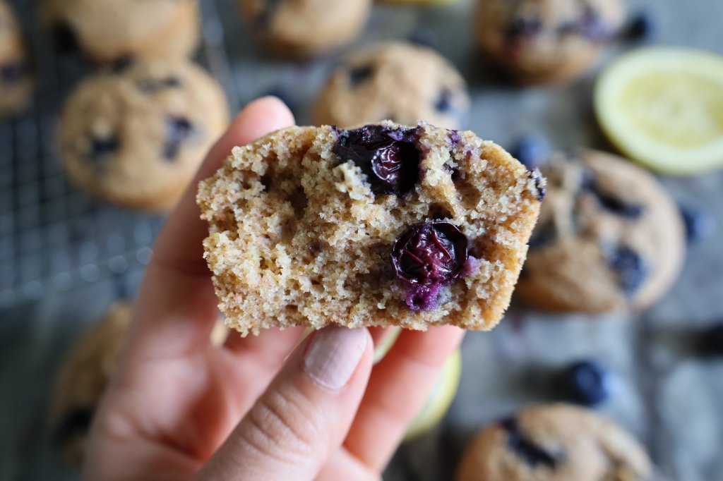 Also, I am not exaggerating when I say they are nutritious and tasty. They have the perfect tang from the lemon and blueberries, great fibre from the blueberries, spelt flour, nut-based cheese, and flax seed, and an amazing soft and fluffy texture. And to (muffin) top it off, they are so quick and easy to make!