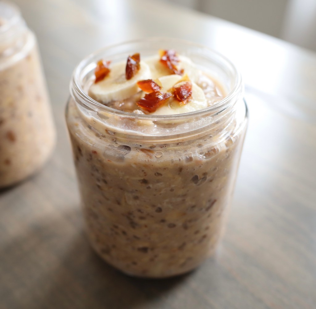 These Banana Date Oats are exactly that. Lightly sweet from ripe banana and dates, with a touch of maple syrup and cinnamon, and just enough texture from chia seeds and oats. They come together in minutes the night before, and can be enjoyed cold or gently warmed in the morning.